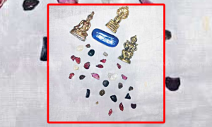 නිධානයකින් ගොඩ ගත් බව කියන පෞරාණික වටිනාකමකින් යුත් බුදු පිළිම තුනක් සහ මැණික් ගල් තොගයක් ළඟ තබා ගෙන සිටි සැකකරුවකු පුත්තලම කොට්ඨාස...