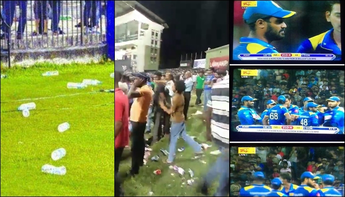 ඊයේ (27) ඉන්දියාව සමඟින් පල්ලේකැලේ ක්රීඩාංගණයේදී පැවති 3වන එක්දින තරඟය ශ්රී ලංකා ක්රිකට් ඉතිහාසයට අඳුර මතකයක් එක් කරනු ලැබුවා. ඒ ප්රේක්ෂකයින්ගේ නොමනා හැසිරීම හේතුවෙන්. ඉන්දියානු පිල ජයග්රහණයට ලකුණු කිහිපයක් තිබියදී නරඹන්නන් පිරිසක් විසින් පිටිය දෙසට බෝතල් ප්රහාරයක්ල්රනු ලැබුවා.