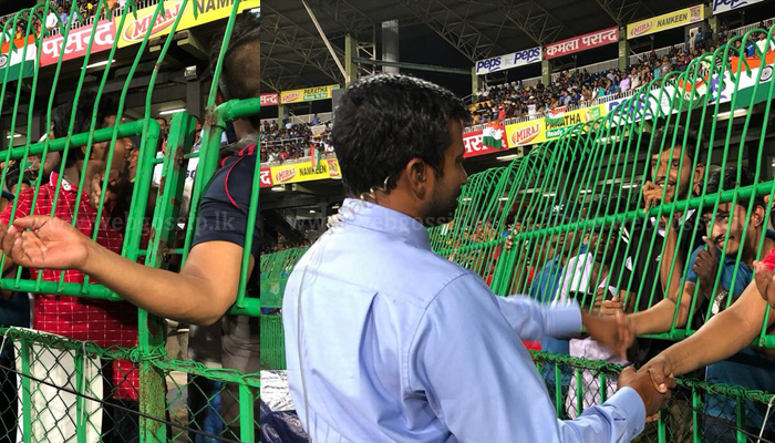 ඒ තමයි ක්රීඩාංගණයේ විස්තර විචාරය කරමින් සිටි ප්රවීන ක්රිකට් ක්රීඩක රසල් ආනල්ඩ් දැක රසිකයන් පිරිසක් ආරක්ෂක වැට අසලට වී ඔහුට අතවැනීම.