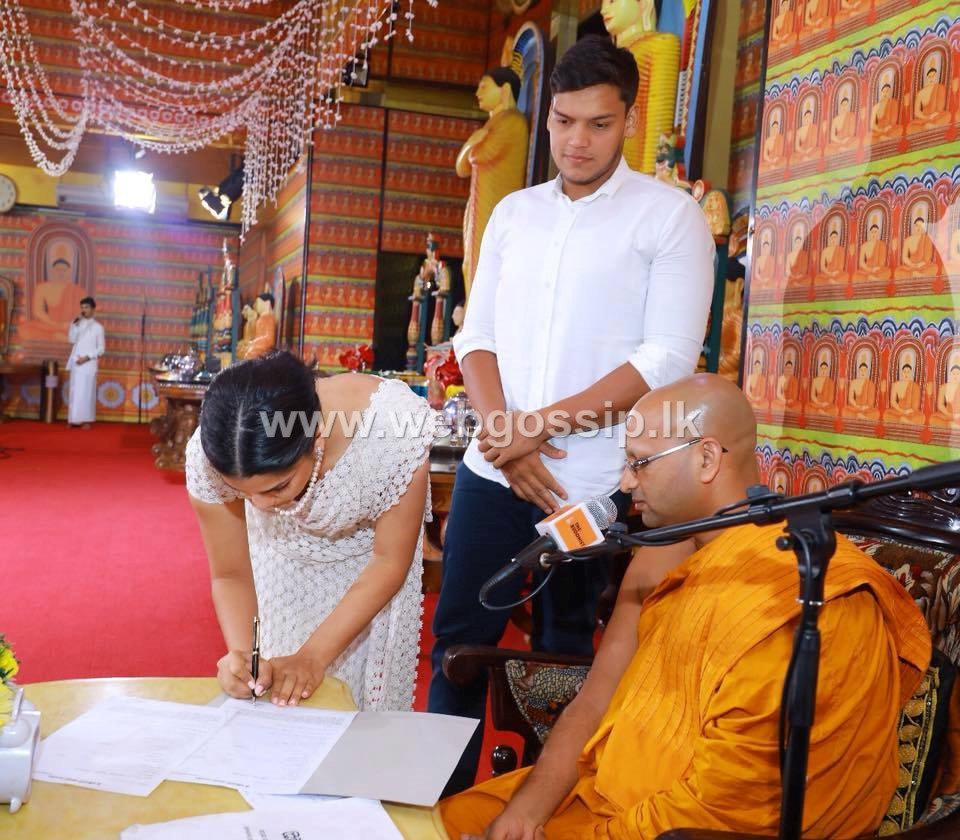 මේ නව යුවළට ආශිර්වාද ප්රාර්ථනා කරමින් කොළඹ විජේරාම මාවතේ පිහිටි ශ්රී සම්බෝධි විහාරයේ කිරි ආහාර පූජාවක් පවත්වා තිබෙනවා.
