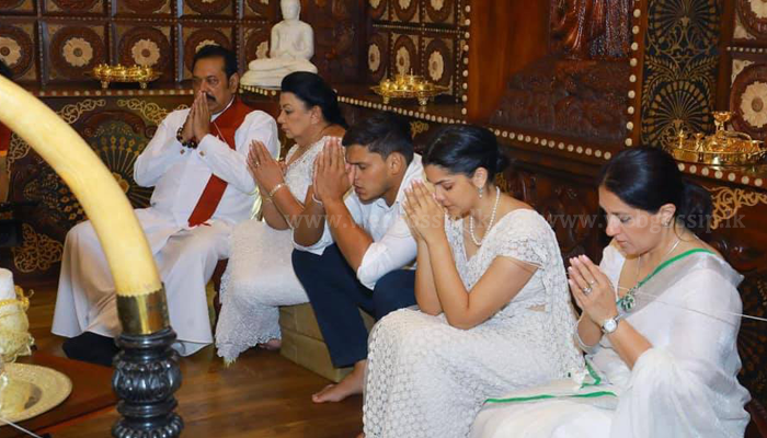 රාජපක්ෂ පවුලේ සියලු දෙනා මෙම පූජාවට ඒක්ව සිටියා.