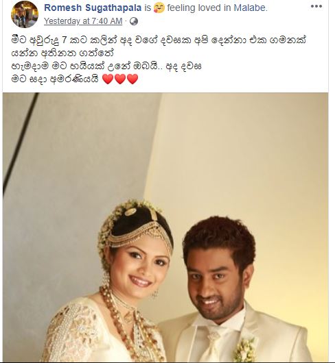 මෙම විවාහ සංවත්සරය වෙනුවෙන් සිය මුහුණුපොතේ මතක සටහනක්ද තබා තිබුණා.
