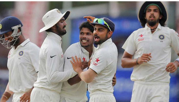 රවිචන්ද්රන් අශ්වින් (67/4) කඩුලු 4 ක්ද රවීන්ද්ර ජදේජා (56/3) සහ ඉෂාන්ත් ෂර්මා (37/3) කඩුලු 3 බැගින්ද බෙදා හදා ගැනීමට සමත්වූහ.