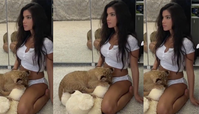 එම නිරූපිකාව විසින් හුරතල් කරන සිංහ පැටියෙකු ඇගේ මුහුණට මුත්රා කරන අයුරු දැක්වෙන වීඩියෝවක් ගැනයි මේ කතාබහ ඇතිවෙලා තියෙන්නේ.