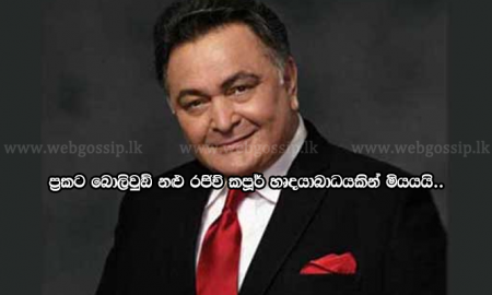 බොලිවුඞ්හි සුප්රකට කපූර් පරපුරේ නළු රජිව් කපූර් හදිසි හෘදයාබාධයකින් මියගොස් ඇත. 58 හැවිරිදි වියේ පසු වූ රජිව් කපූර් චිත්රපට නළුවන් වූ රිෂි...