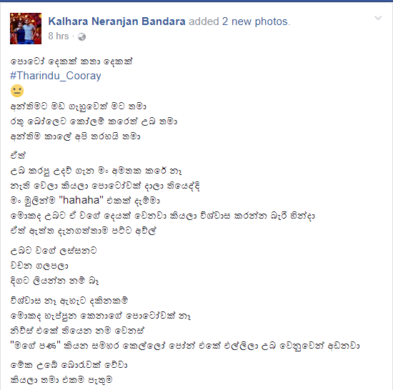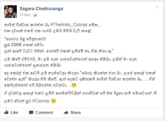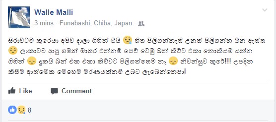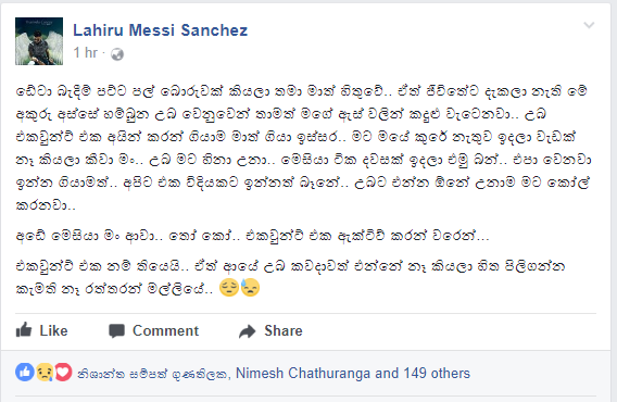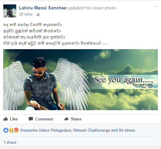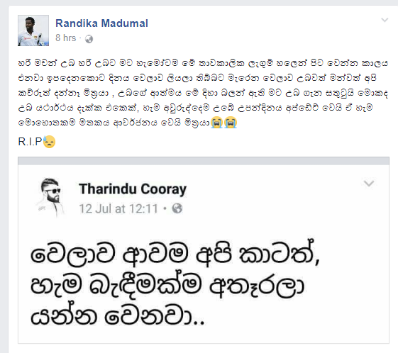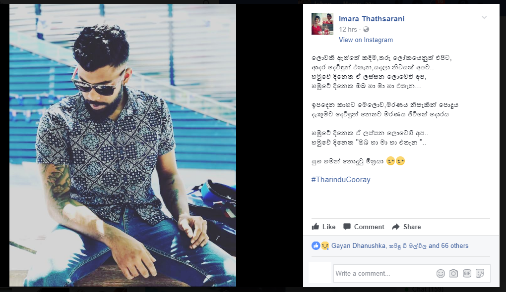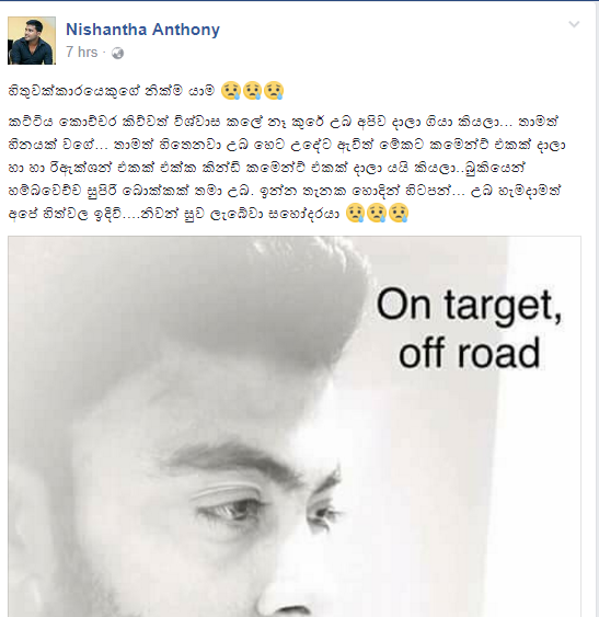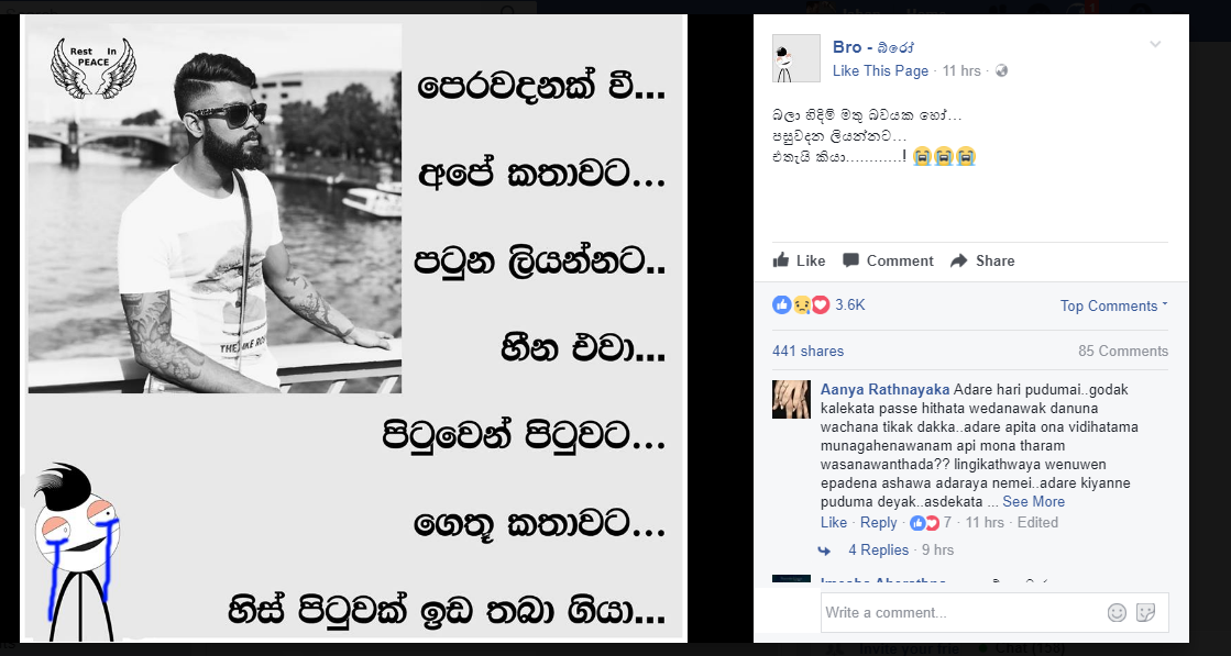 මේ ගැන මුහුණුපොතේ ඔහුගේ මිතුරන් ශෝකය පලකරමින් අදහස් පලකර තිබුණේ මෙලෙසින්.