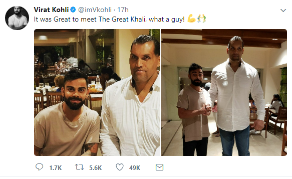 විරාත් කෝලි ග්රේට් කාලී සමග ඡායාරූප කිහිපයක් ගෙන සිය නිළ ට්විටර් ගිණුමේ පලකර තිබුණේ මෙලෙසින්.