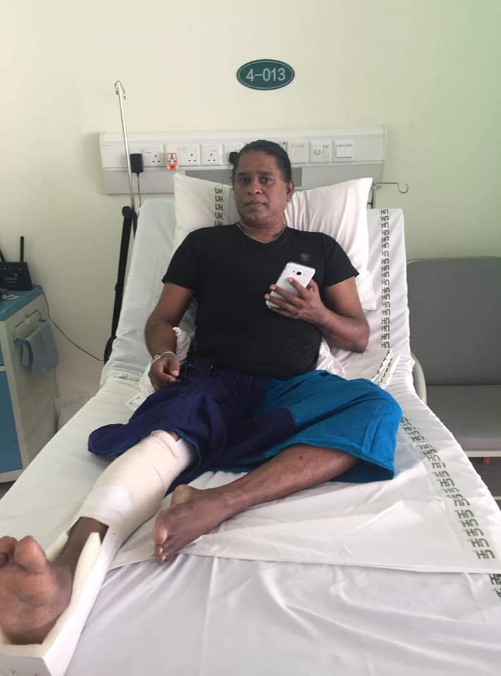 තාම ඇවිදින්න එපා කියලා තියෙන්නේ. එළියෙන් නොපෙනුණාට ඇතුළෙන් කකුලේ තත්ත්වය භයානක බව තමයි වෛද්‍යතුමා කිව්වේ.