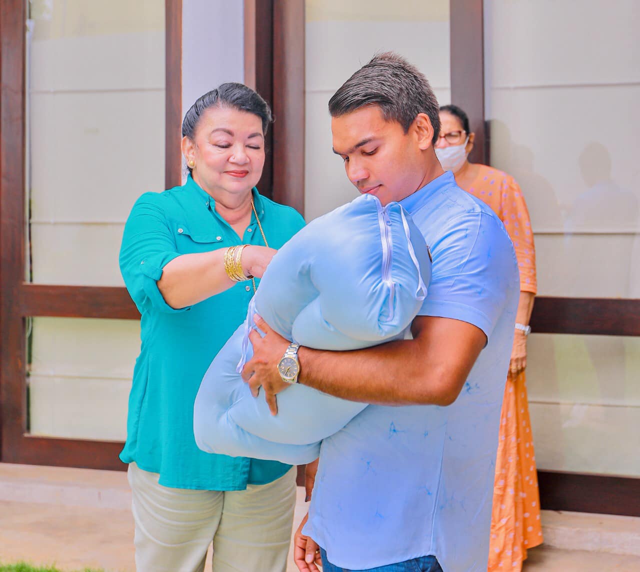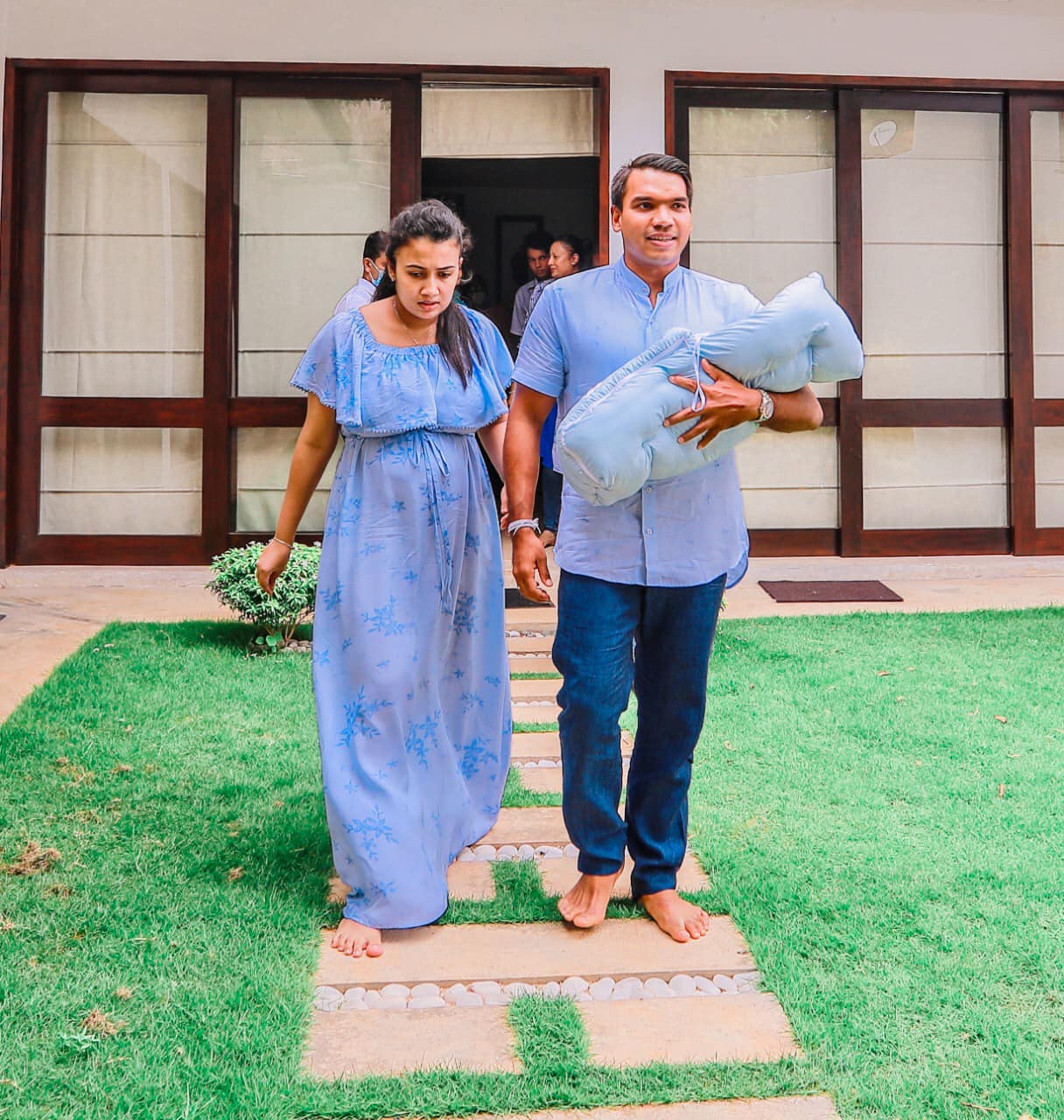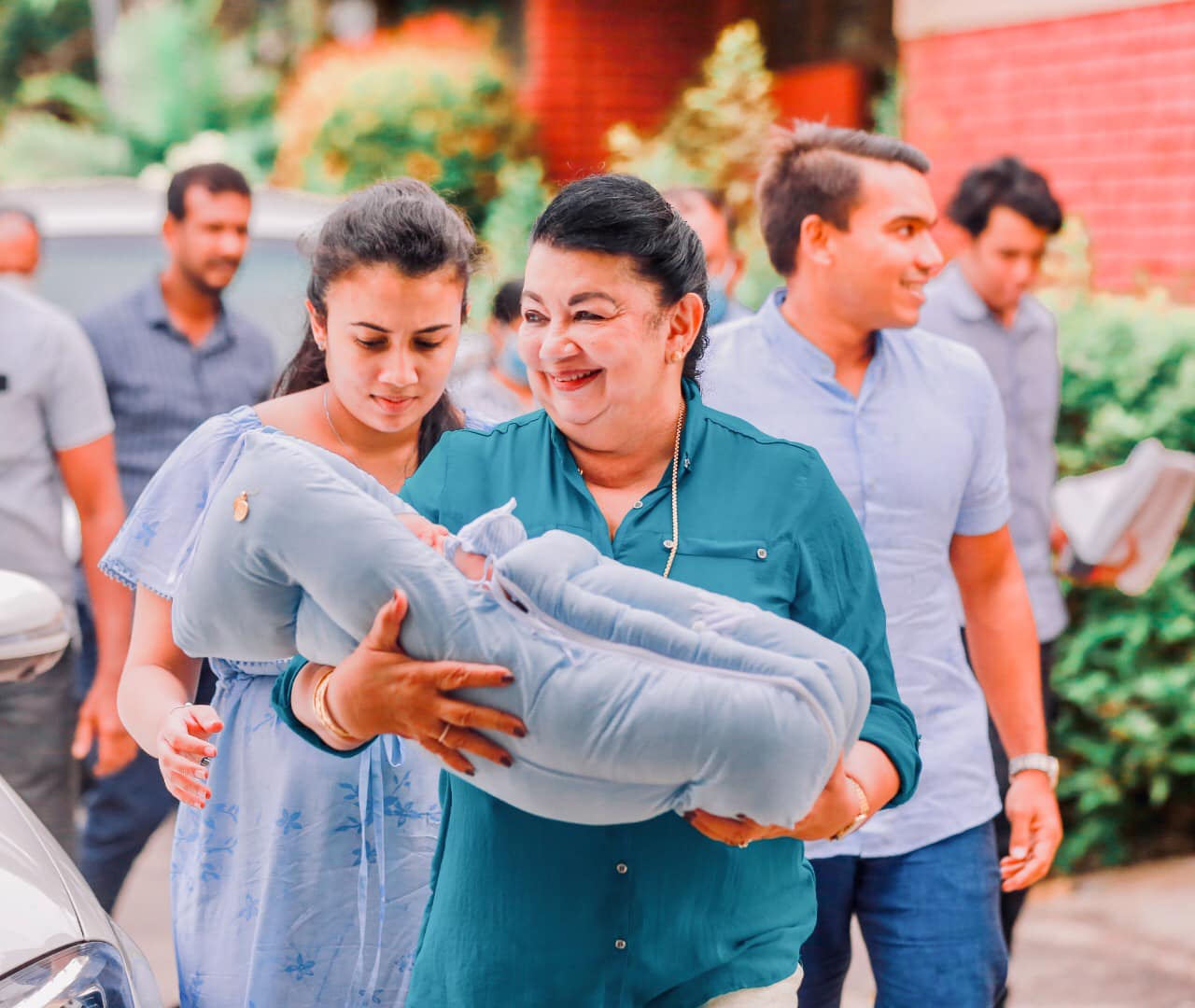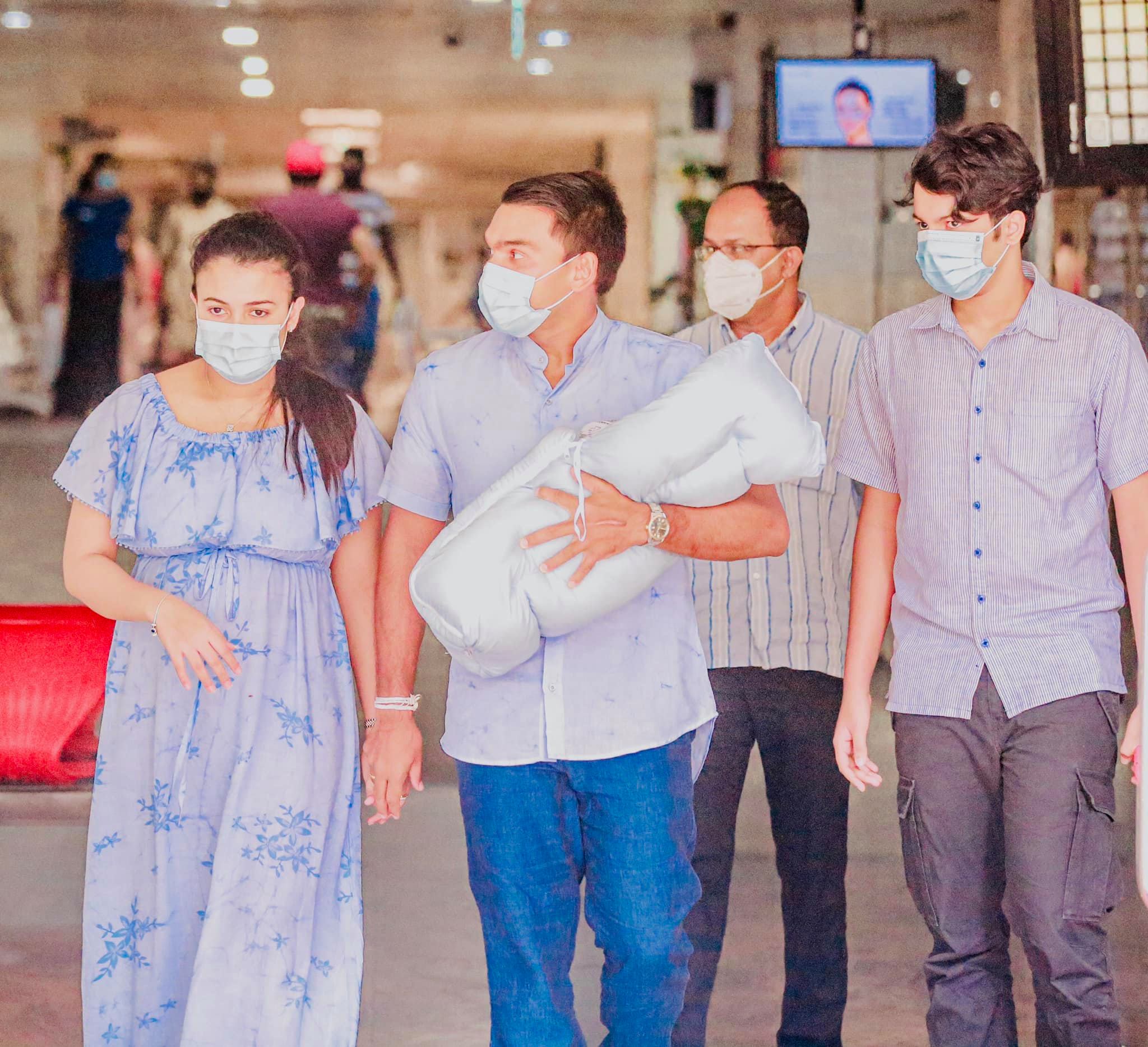 පුංචි පුතෙකුට පියෙකු වූ නාමල් රාජපක්ෂ පවුලේ අය සමගින් අලුත් අමුත්තාව නිවෙසට ගෙන ගිය අවස්ථාවේ ඡායාරූප කිහිපයක් අප වෙත ලැබී තිබෙනවා.
