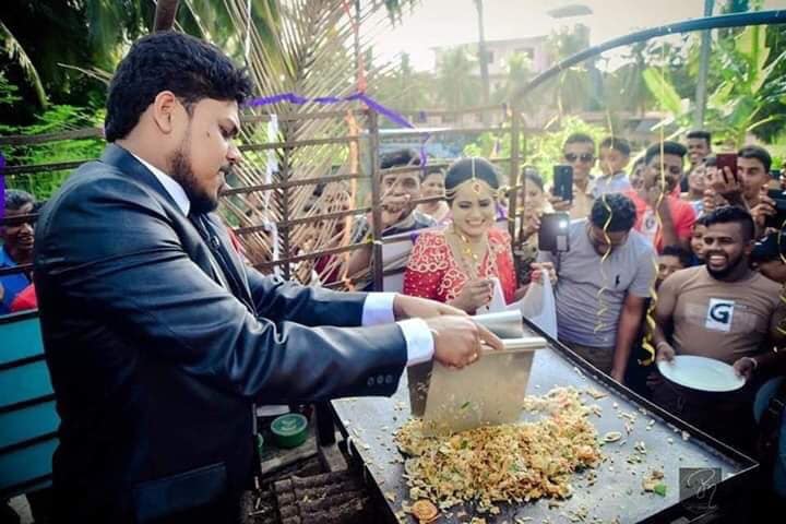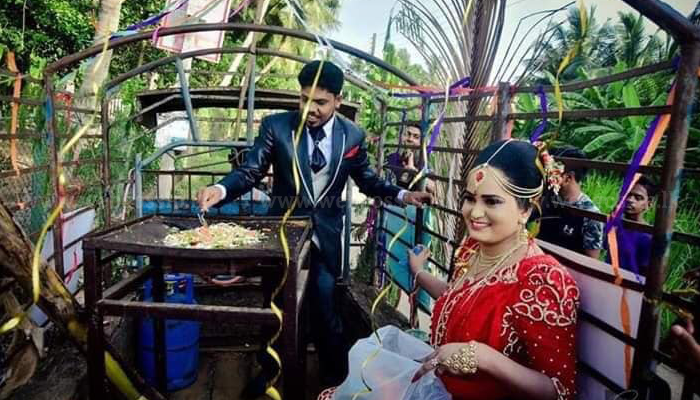 එහි දක්නට ලැබුණේ මනාල යුවළ අත් ට්රැක්ටරයක නංවා මනාලයාට කොත්තු ගැසීමට ලබාදෙන අයුරුයි.