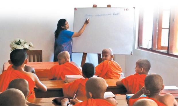 ශිෂ්ය භික්ෂූන් වහන්සේලා එක හඬින් පවසති…පිරිවෙන පුරා මැවෙන්නේ අපූරු ශාබ්දික චමත්කාරයකි. භාෂාව, දෙමළ ජාතික ගුරුවරිය හා බෞද්ධ භික්ෂූන් අතර අපූරු සබඳතාවක් ගොඩනගා තිබේ. ඒ දෙස බලා සිටින කිසිවකුටත් මේ ජාතීන් හා ආගම් දෙකක පුද්ගල හමුවීමක් බව පෙනෙන්නේ නැත.