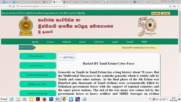 ‘දෙමළ ඊලාම් සයිබර් බළකාය‘ නමින් හඳුන්වා ගත් කණ්ඩායමක් මෙලෙස වෙබ් අඩවි වලට අනවසරයෙන් ඇතුළු වී ඇතැයි එම ආරංචි මාර්ග කියයි. සංචාරක සහ ක්රිස්තියානි කටයුතු අමාත්යංශ වෙබ් අඩවියේ අදාළ කණ්ඩායම පණිවිඩයක් ද සටහන් කර තිබේ. රජයේ ඇතැම් වෙබ් අඩවි වලට පිවිසීමට නොහැකි වී ඇති අතර ඊට හේතුව කිසියම් පිරිසක් අනවසරයෙන් ඇතුළු වීමදැයි නොදන්නා බව රජයේ ප්රකාශකයෙක් පැවසීය.