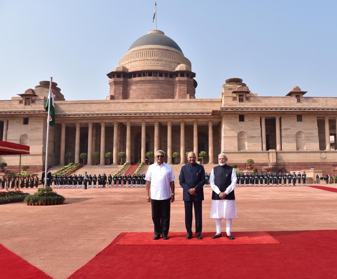 ජනාධිපති ගෝඨාභය රාජපක්ෂ මහතා අද ඉන්දීය අග්‍රාමාත්‍ය නරේන්ද්‍ර මෝදී හමුවී තිබෙනවා.ජනපති පිළිගැනීම සඳහා ආචාර වෙඩි මුර 21ක් තැබීම මෙහිදී විශේෂත්වයක් වෙනවා.මේ අතර ජනාධිපතිවරයා පිළිගැනීමට ඉන්දීය ජනාධිපති රාම් නාත් කෝවින්ඩ්ද එම ස්ථානයට සහභාගී වී සිටි බවට වාර්තා වෙනවා. ජනපති මෙලෙස පිළිගෙන තිබුනේ ඉන්දියාවේ රස්ත්‍රපති භවන් හිදීයි.අභිනව ජනාධිපති ගෝඨාභය රාජපක්ෂ මහතාගේ ප්‍රථම විදෙස් සංචාරය මෙය වන අතර ඉන්දීය අගමැතිවරයාගේ නිල ආරාධනයට අනූව ඔහු මෙලෙස ඉන්දියාවේ සංචාරයට පැමිණි තිබෙනවා.