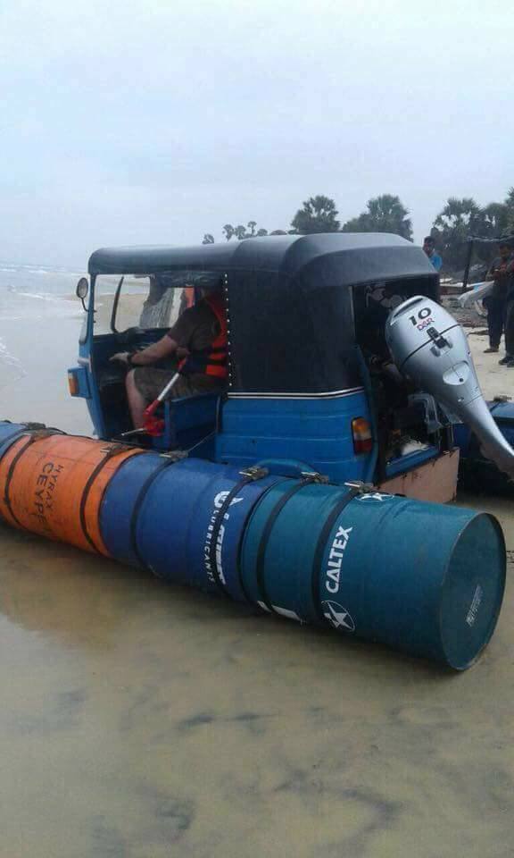 ඒ තමයි ත්‍රීරෝද රථය බෝට්ටුවක් කරලා.