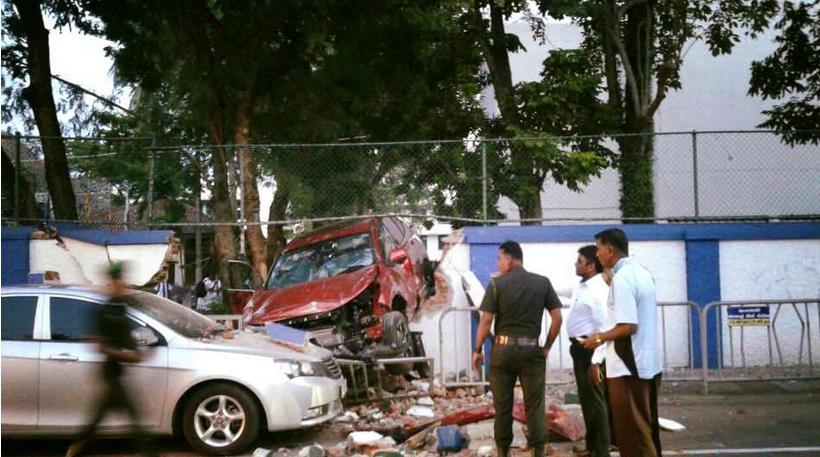 කොළඹ විශාකා විද්යාලයේ ගුරුවරියක් විසින් ධාවනය කළ මෝටර් රථය පාලනය කරගත නොහැකිව එම පාසලේම තාප්පයේ ගැටී නැවතී තිබෙනවා.