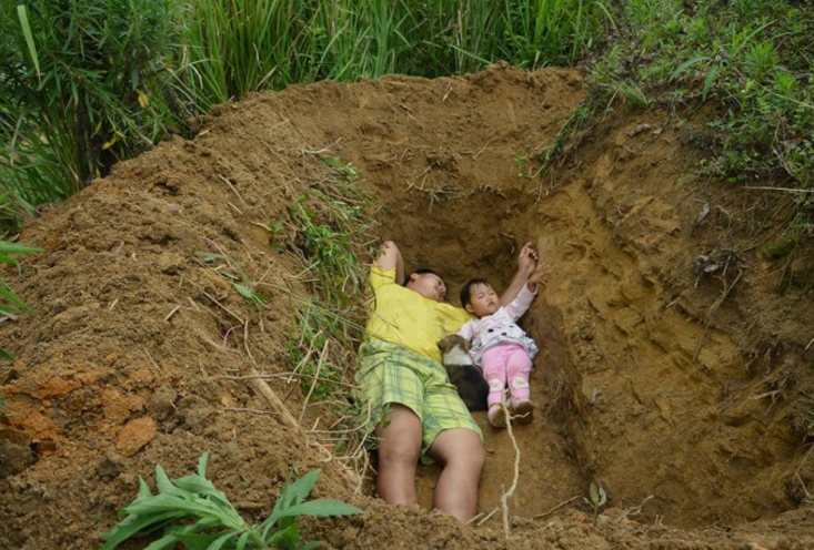 තම වේදනාව දරා ගැනීමට නොහැකිව මෙම පියා සොහොනක් තනාගෙන තම දියණියත් සමඟ මරණය ළඟාවනතෙක් බලා සිටිනවා.