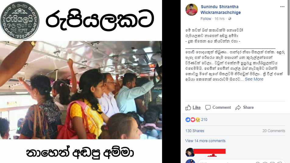 බස් එකේ එක කාලගෝට්ටියයි. අම්මා රුපියල ඉල්ලනවා. කොන්දොස්තර බනිනවා.. මිනිස්සු හිනා වෙනවා..