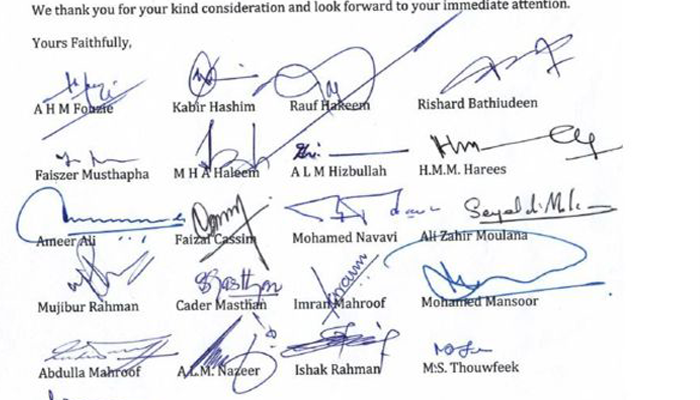 ශ්‍රී ලංකා පාර්ලිමේන්තුව නියෝජනය කරන මුස්ලිම් මහජන නියෝජිතයන් පිරිසක් ජනාධිපතිවරයා සහ අගමැතිවරයා වෙත ලිපියක් යොමු කර තිබෙනවා.