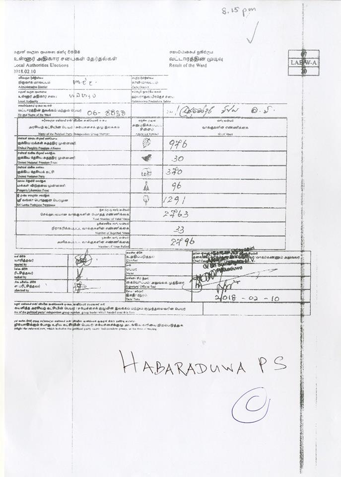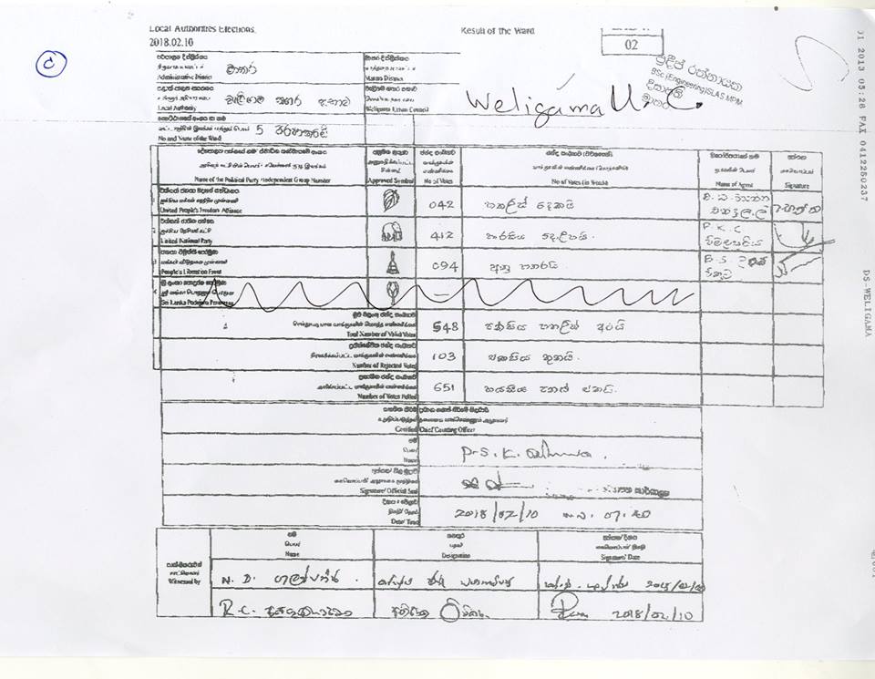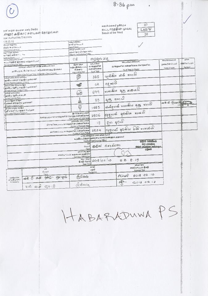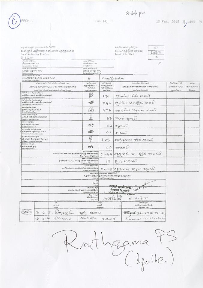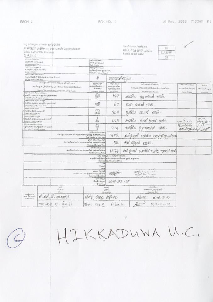 මැතිවරණ කොමසාරිස් කාර්යාලයට අයත් වෙබ් පිටුවෙහි පළවූ නිල ඡන්ද ප්‍රතිඵලයි මේ.