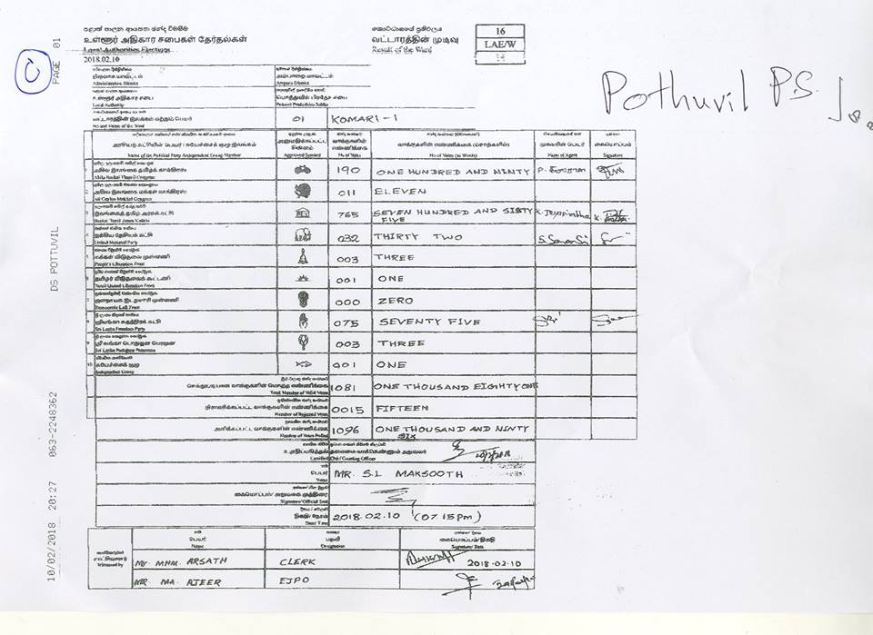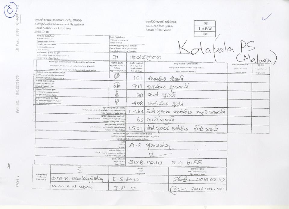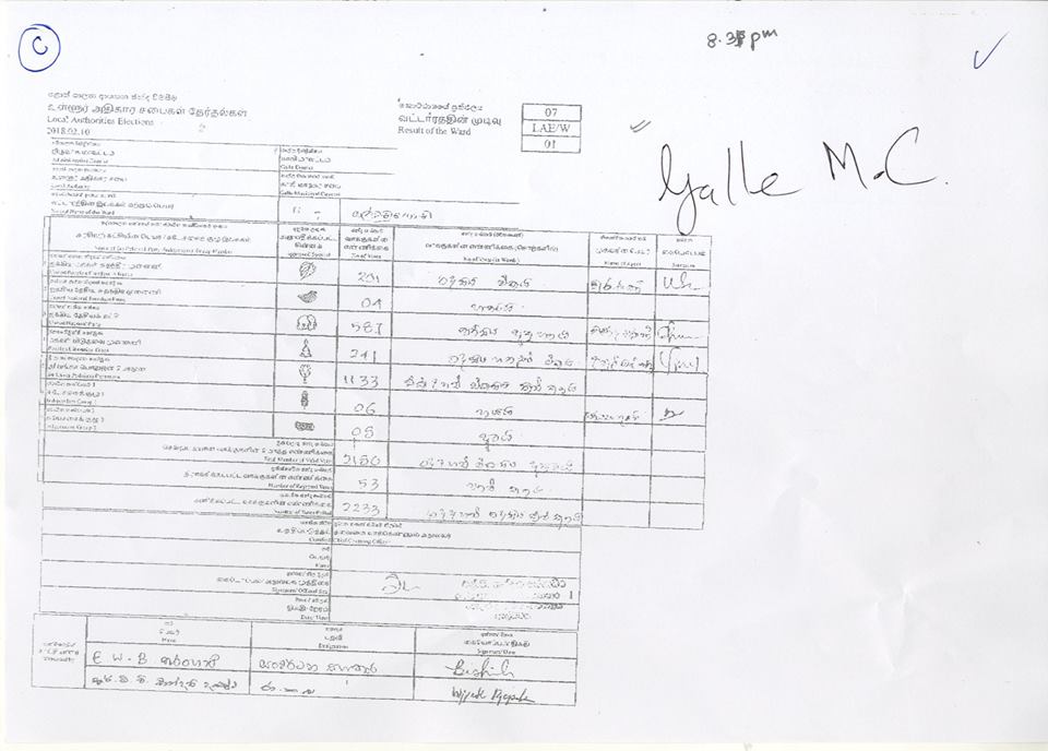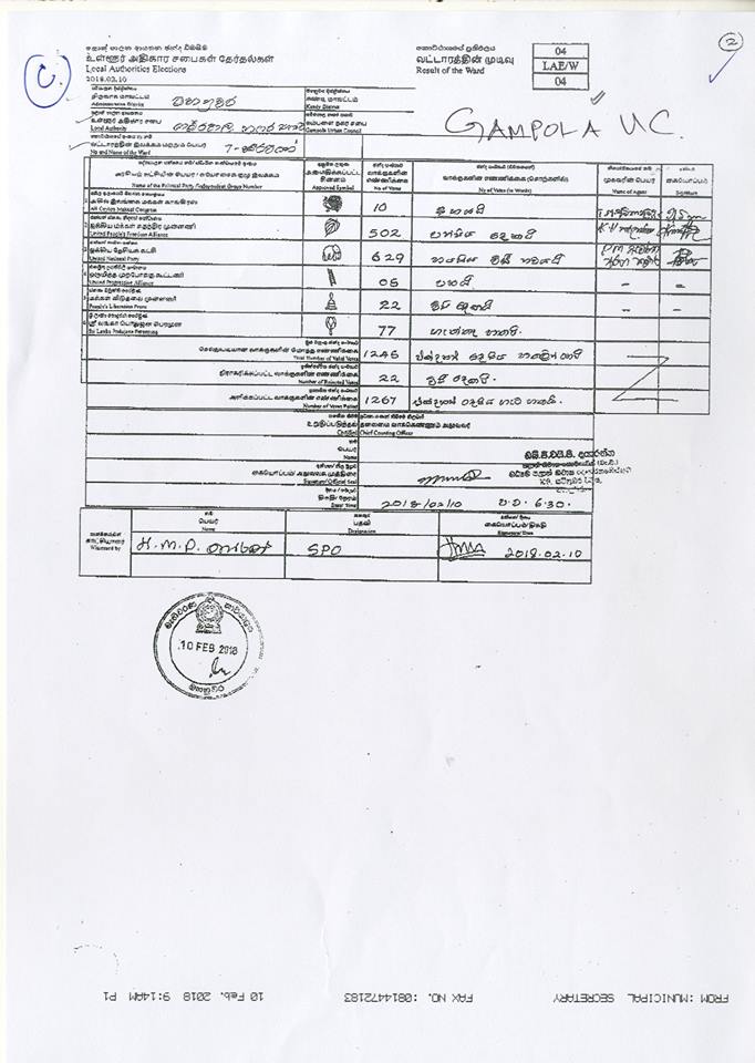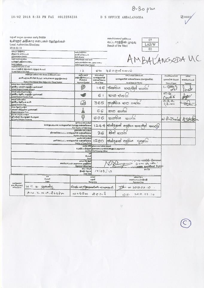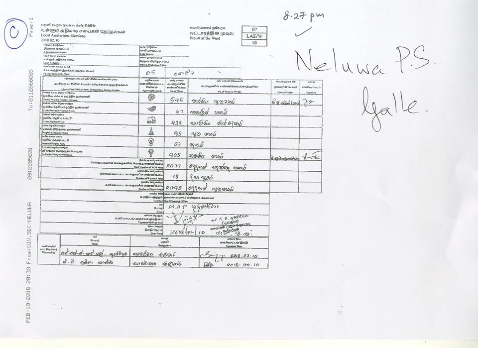 මැතිවරණ කොමසාරිස් කාර්යාලයට අයත් වෙබ් පිටුවෙහි පළවූ නිල ඡන්ද ප්‍රතිඵලයි මේ.