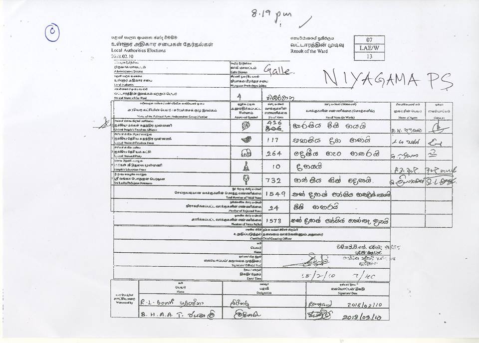 නිල ඡන්ද ප්‍රතිඵල නිකුත් වෙයි – මෙතෙක් නිකුත් වූ සියළු නිල ඡන්ද ප්‍රතිඵල මෙන්න