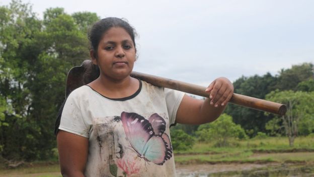 ”මම උදව්වට ආවේ නෑ කියල කාත් එක්කවත් තරහ නෑ. ඒ අයටත් වැඩ ඇති නේ. නියරවල් ඇස්සේ, කුඹුර කෙටුවේ හැම දේ ම කළේ තනියෙන්. කලාතුරකින් මේ කොහිල වළේ කොහිල ටිකක් කඩන්න එන කිරි අම්ම කෙනෙක් විතරයි තනියට ඉතුරු වෙන්නේ. සැරින් සැරේ තාත්තා ඇවිත් බලල යනවා,” යනුවෙන් සකුන්තලා පැවසුවේ අව්වට වියළි ගිය මඩ පිසදමමිනි.