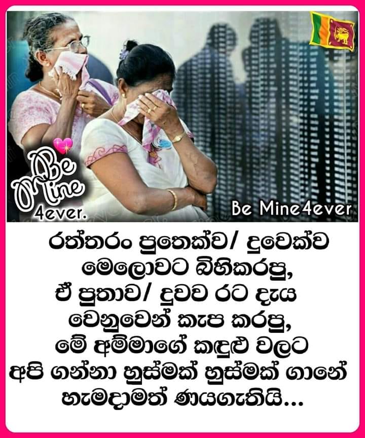 “පුතේ මට දුක උඹ මට නැතිවුණු එක ගැන නෙවෙයි.. දිවිදුන් උඹේ අභිමානය පරයින් අමු අමුවේ කෙළෙසනු දැකීමයි”