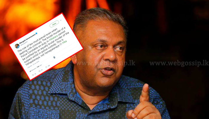 අපරාධ කල්ලි සාමාජිකයෙකු පොලිස් වෙඩි පහරින් ඝාතනය වීම සම්බන්ධයෙන් සිය ට්විටර් ගිණුමේ සටහනක් තබමින් අමාත්යවරයා මේ බව ප්රකාශ කර තිබෙනවා.