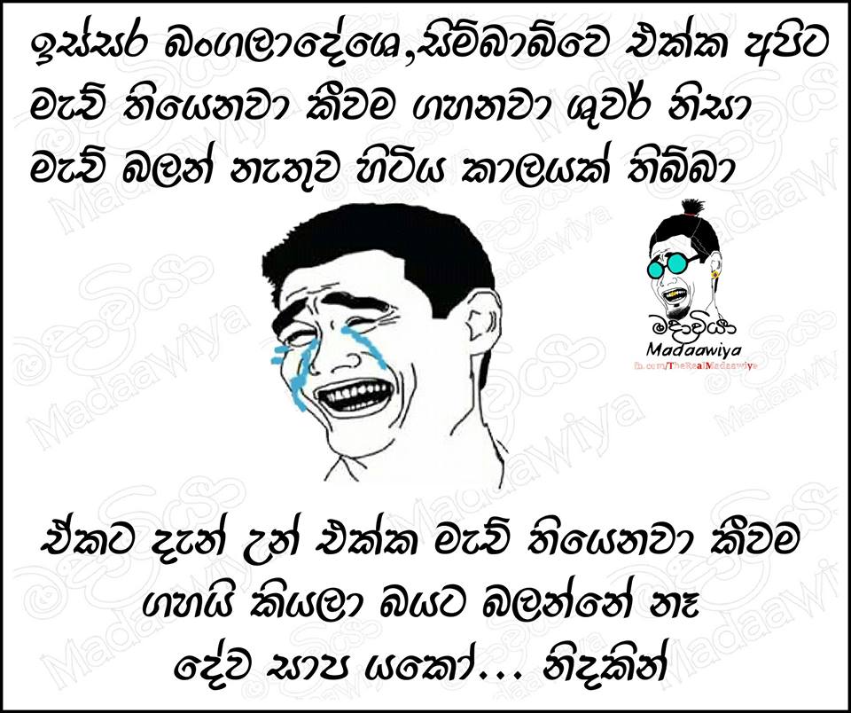 මේ කොහොම වුණත් ඊයේ මැච් එකේ පරාජයෙන් පස්සේ මුහුණුපොත පුරාම විවිධ රසවින්දනාත්මක Post හුවමාරු වෙන්න පටන් ගත්තා.