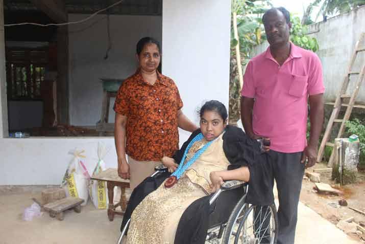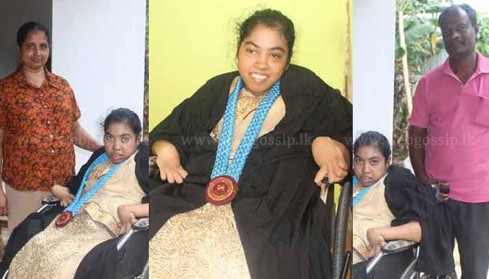 දෑත් හා දෙපා උපතින්ම ආබාධ වූ මෙම උපාධිධාරිනිය පිළිබඳ අපට තොරතුරු දන්වා සිටියේ ලංකාවේ එකම විශේෂිත මහා විද්‍යාලයේ විදුහල්පතිවරයා වන කෑගල්ල, අඹන්පිටිය විශේෂ මහා විද්‍යාලයේ විදුහල්පති බුද්ධික වික්‍රමනායක මහතාය.