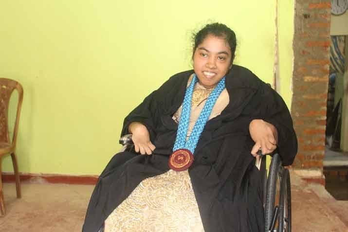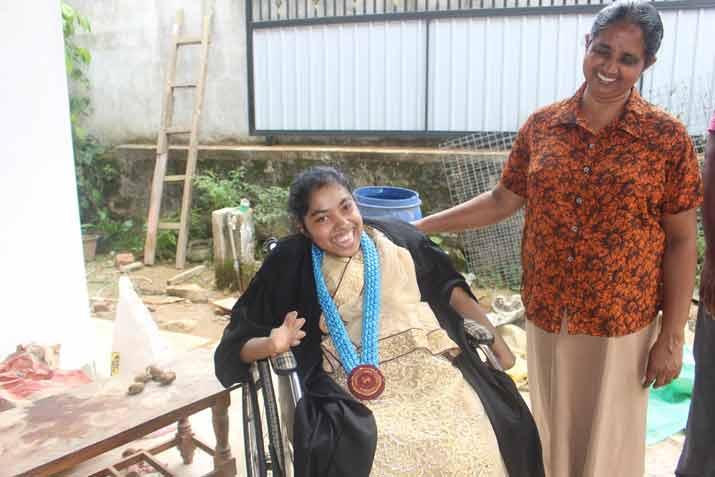 දෑත දෙපා උපතින්ම සම්පූර්ණයෙන්ම ආබාධිත දැරියක් අධ්‍යයන පොදු සහතික පත්‍ර සාමාන්‍ය පෙළ විභාගයට හා උසස් පෙළ විභාගයේ ප්‍රශ්න පත්‍රවලට වාචිකව පිළිතුරු සපයා ඉන් විශිෂ්ට ලෙස සමත්වීමෙන් පසු පේරාදෙණිය විශ්වවිද්‍යාලයෙන් ඉකුත්දා ලෝකයේ ප්‍රථම වතාවට උපාධියක් හිමිකර ගත්තාය. ඒ උපාධිධාරිනිය පසුගිය 07දා අපට කෑගල්ල වල්දෙණිය ප්‍රදේශයෙන් හමුවිය.