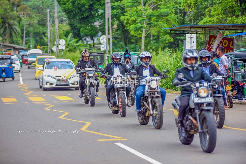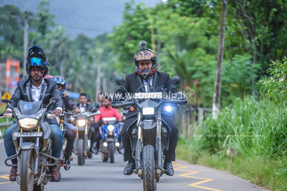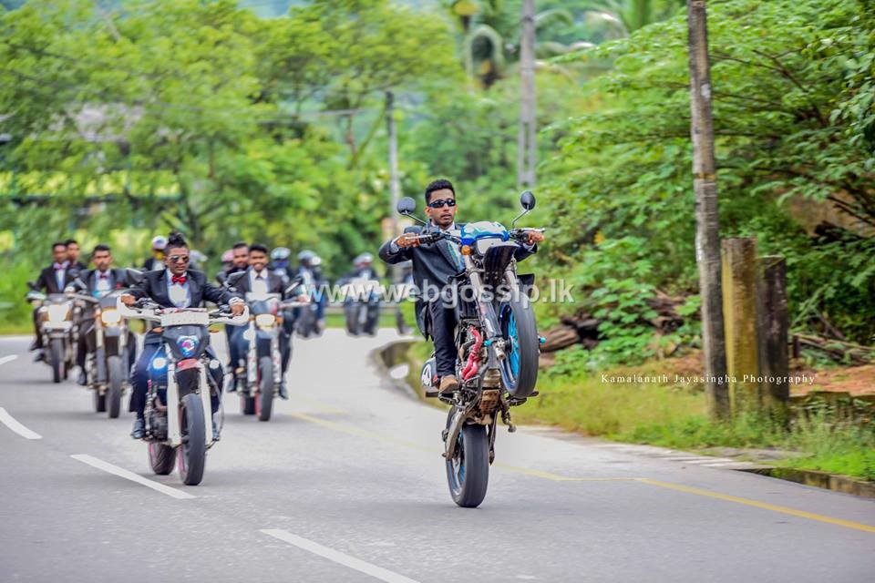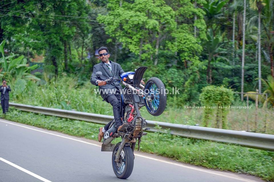 යතුරුපැදිවලින් ඒ විදිහට වැඩ දාන යාළුවෝ සෙට් එකත් මහ පාරේ වැඩ දාලා මනාලයාත් යතුරුපැදියකින් ගිය හැටි මේ ඡායාරුපවලින් දිස්වෙනවා.