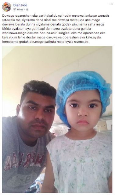 රටම බලාසිටි දැරියගේ සැත්කම සාර්ථකයි – සැත්කමෙන් පසු දැරියගේ තාත්තාගෙන් ෆේස්බුක් සටහනක්