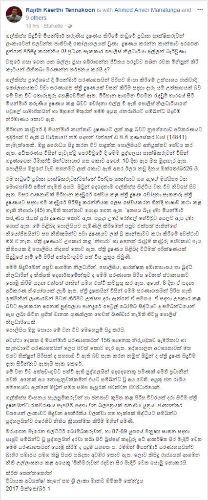 මේ කැෆේ සහ ශ්රී ලංකා මානව හිමිකම් කේන්ද්රයේ විධායක අධ්යක්ෂ කීර්ති තෙන්නකෝන් මහතා සිය ෆේස්බුක් ගිණුමේ පළකල අදහසයි.