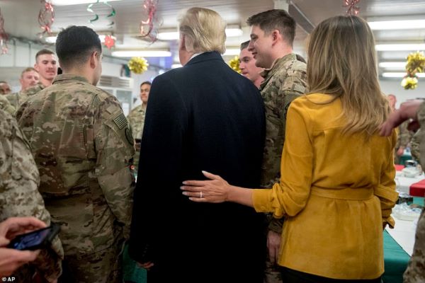 නත්තල් දිනයේදී හමුදා සෙබළුන් පුදුම කරමින් ජනපති ඩොනල්ඩ් සහ මෙලනියා ඉරාකයට පැමිණ තිබුණා.