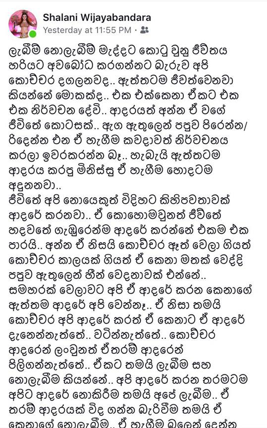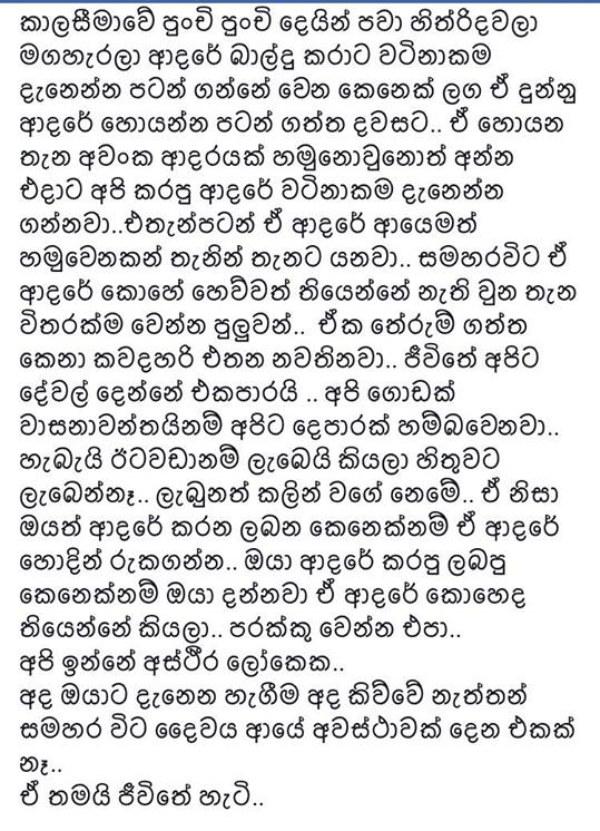 ඒ ශලනි ආදරය ගැන දැමූ සටහනක් සමගයි.