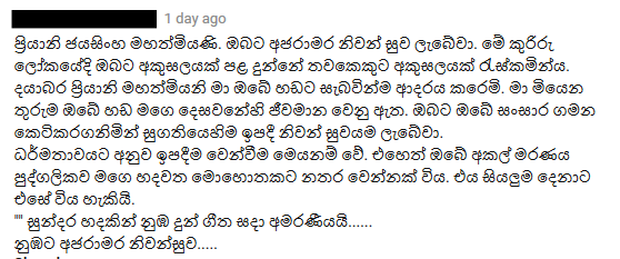 ඉතින් අද දිනයේ ඇය සදහටම අපෙන් සමුගන්නවා.