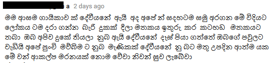 කෙසේවෙතත් මේ සිද්ධිය ඇගේ රසිකයන් බොහෝ සෙයින් කම්පාකරන සිදුවීමක් වුණා.