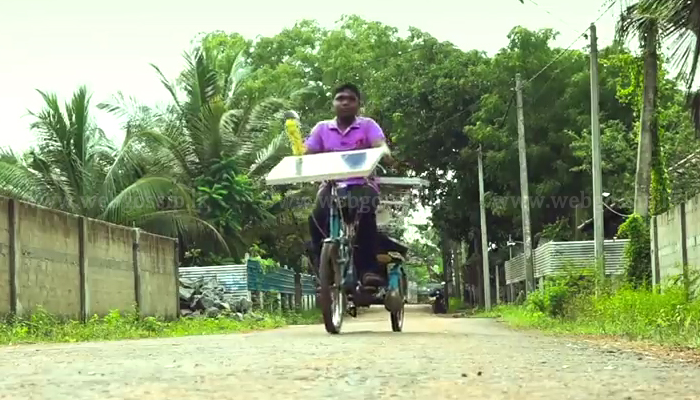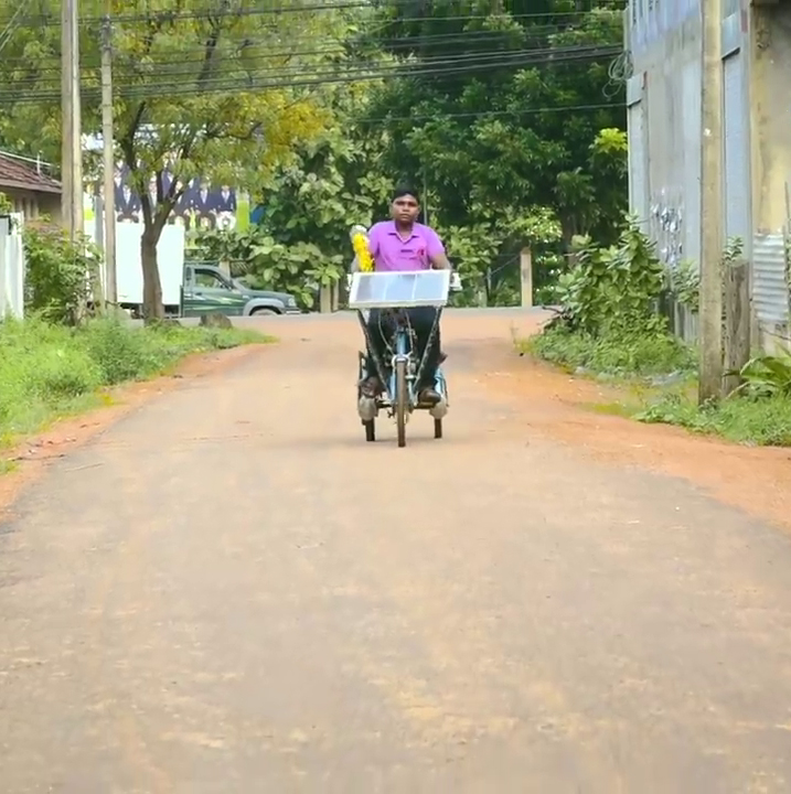 තම සීයාගේද සහය ඇතිව විවිධ ස්ථානයන්වලින් ඉවතලන උපකරන ආදිය එකතු කොට සූර්ය බලයෙන් ගමන් කිරීමට හැකි ට්රයිසිකලය නිර්මාණය කළ බව දරුවා පැවසීය.
