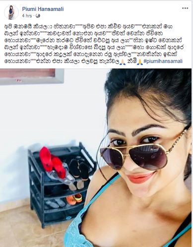 ඇය සිය මුහුණුපොතේ දැමූ සටහනක් ගැන හැමතැනම වගේ කතාවෙන්න පටන් අරන්.