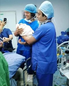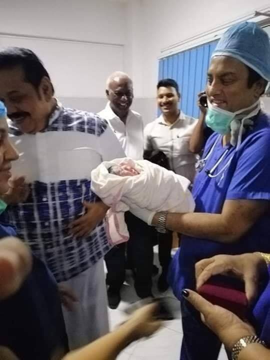තමන් සීයා කෙනෙක් වුණු බව දැනගන මහින්ද රාජපක්ෂ මහතා සහ පවුලේ සියල්ල අලුත් මුණුබුරා බලන්න රොහලට පැමිණ තිබුණා.