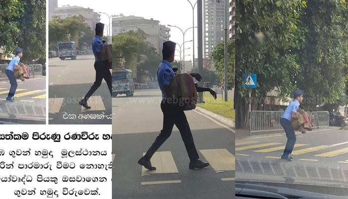 කොළඹ ගුවන් හමුදා මූලස්ථානය ඉදිරිපිට තිබෙන කහ ඉර මතින් ගමන් කිරීමට නොහැකි වයෝවෘද පියෙක් ඔසවාගෙන ගොස් පාර මාරු කරවන ගුවන් හමුදා සෙබලෙකුගේ ඡායාරූපයක් මේ දවස්වල අන්තර්ජාලය පුරාම හුවමාරු වෙමින් තිබෙනවා.