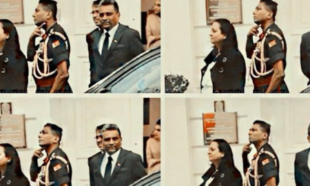2018 වසරේ පෙබරවාරි 04 වැනිදා බ්රිතාන්ය මහකොමසාරිස් කාර්යාලය ඉදිරිපිට එල්.ටී.ටී.ඊ සංවිධානයට සහය දක්වමින් උද්ඝෝෂණයේ නිරත පිරිසකට හස්ත සංඥාකරමින් තර්ජනය කළ බවට කියන...