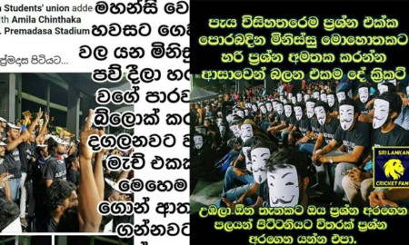 ශ්රී ලංකාව සහ බංග්ලාදේශය අතර ආර් ප්රේමදාස පිටියේ ඊයේ (4) පැවති විස්සයි විස්ස තරඟය අතරතුර සයිටම් විරෝධී පෝස්ටර් හා ටී ෂර්ට් රැගෙන...