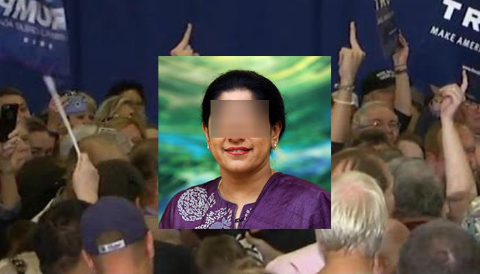 ඒ අමෙරිකානු ජනාධිපති ඩොනල්ඩ් ට්රම්ප් සිය මෝටර් රථයෙන් ගමන් කරනකොට අදාළ කාන්තාව මැදගිල්ල උස්සා පෙන්වූ බව කියන වරදකටයි.