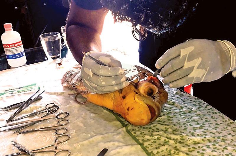 “මම මාසෙකට මාළුවන්ගේ සැත්කම් 10ක් 15ක් විතර කරනවා. මාතර, අම්පාර, අනුරාධපුර, හලාවත වගේ බොහෝ දුර පළාත්වලින් මට කතා කරනවා. මම ජංගම සේවාවක් සපයන්නේ. සැත්කම්වලට අවශ්ය උපකරණ, ඖෂධ වර්ග සියල්ලම බෑග් එකේ දාගෙන මම බස් එකේ යනවා. ඉස්සන් කොටුවල රෝග පැතිරුණාම මට එන්න කියලා උපදෙස් ගන්නවා. එක පාරක් විසිතුරු මසුන් ව්යාපාරයක් කරන කෙනකුගේ ලක්ෂ ගණන් වටිනා මාළුන්ට රෝගයක් වැලඳිලා. මාළු මැරි මැරී ගිහින්. මාළු සම්බන්ධ විශේෂ දැනුමක් තියෙන පිරිසකගෙන් ඒ ගැන අහපුවාම උපදෙස් දීලා තිබෙන්නේ ක්ලෝරින් දාලා මරන්න කියලා. ඒ පාර ඒ අය මාව හොයාගෙන ආවා. මම ගිහින් බලලා මාළුන්ට බෙහෙත් දැම්මා. මගේ බෙහෙතින් මාළු ටික සනීප වුණා. මැරුවා නම් අපරාදේ. ලක්ෂ ගණන් වටිනා මාළු.”