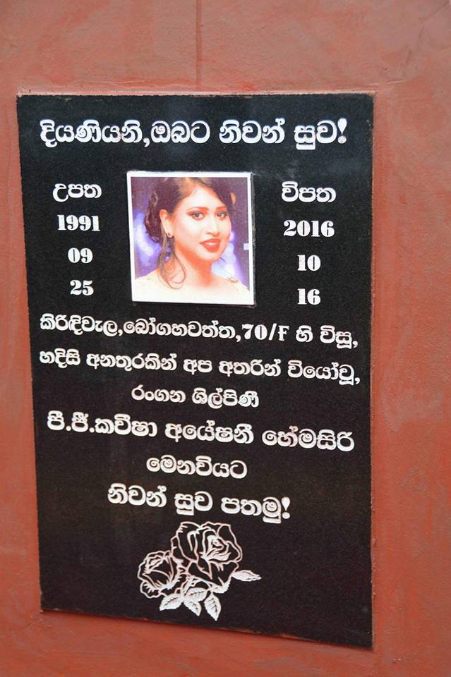 රංගන ශිල්පිණී කවීෂා අයේෂානි මියගියේ අදට හරියටම අවුරුද්දකට කළින්.