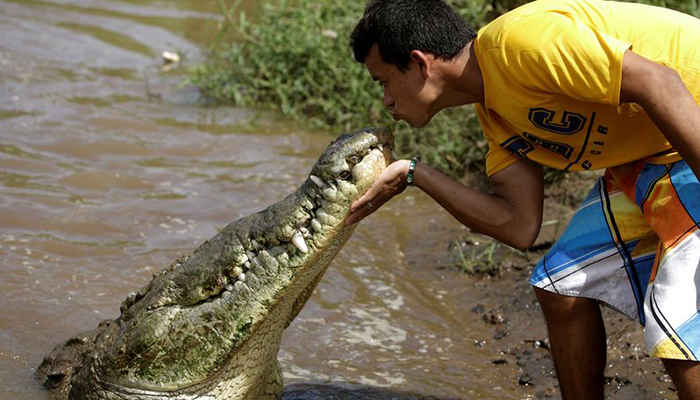 කිඹුලන්ට හාදු දෙන මේ පුද්ගලයා ගැන අපට අහන්න ලැබෙන්නේ කොස්ටා රිකාවෙන්. ලෝකයේ කිඹුල්ලුන් වැඩි වශයෙන් සිටින ටාර්කොල්ස් ගඟ යාත්රා කරන්න සංචාරකයින් බොහොමයක් වාර්ෂිකව කොස්ටාරිකවට පැමිණෙනවා.මෙසේ පැමිණෙන සංචාරකයින්ව සංචාරක බෝට්ටුවට ගෙනවා ගන්න ජුවාන් සාරදාස් නැමති පුද්ගලයා මෙසේ කිඹුලන් සිපගන්නවා කියලා තමා වාර්ථාවෙන්නේ. ඔහු පවසන්නනේ කිඹුලන් සිප ගැනීම හා පොෂණය කිරීම ඔහුගේ විනෝදාංශය බවයි.මෙහි සිටින කිඹුලන්ගෙන් බොහෝ දෙනෙක් ඇමරිකානු කිඹුලන් වන අතර කකුල් හතරෙන් ඇවිද යා හැකි එකම විශේෂයි. ඔවුන් අඩි 17ක් පමණ දිගට වැඩෙන අතර රාත්තල් සිය ගණනක් බරකින් යුක්ත වෙනවා.