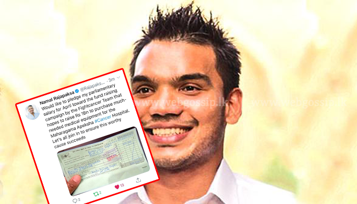 නාමල් රාජපක්ෂ මන්ත්රීවරයා අප්රේල් මස තම පාර්ලිමේන්තු මන්ත්රී වැටුප මහරගම අපේක්ෂා පිළිකා රෝහලට පරිත්යාග කර තිබෙනවා.