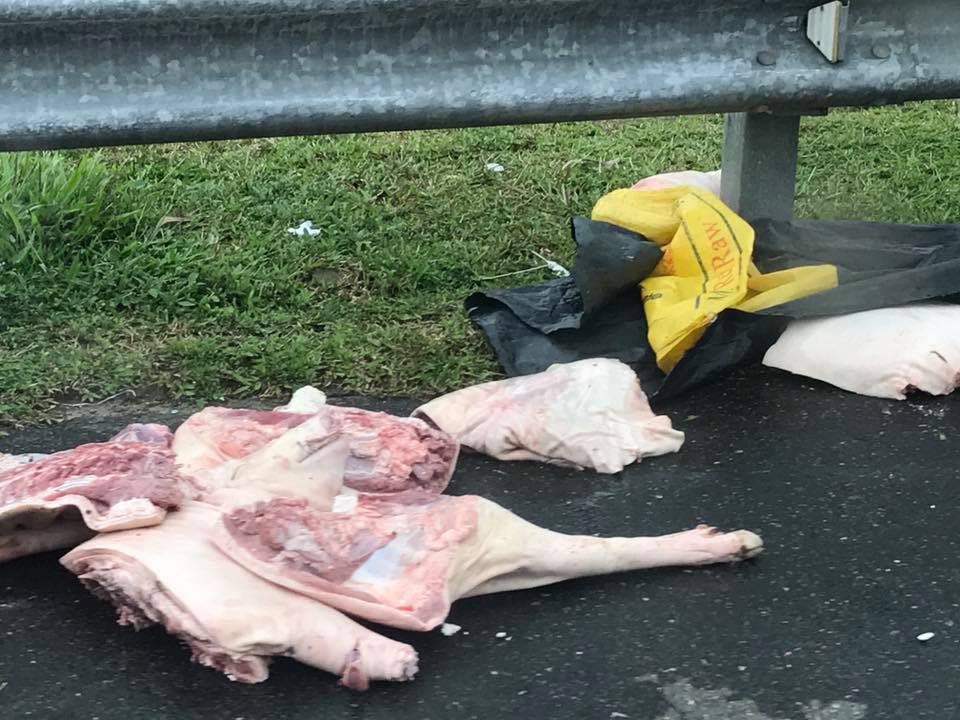 ඌරු මස් ප්රවාහනය කළ ලොරි රථයේ සහයකයාගේ තත්වය බරපතල බවත්, අනතුරින් අධිවේගි මාර්ගයේ ආරක්ෂක වැටට හා ලොරි රථ දෙකට දැඩි අලාභහානි සිදුව තිබෙනවා.